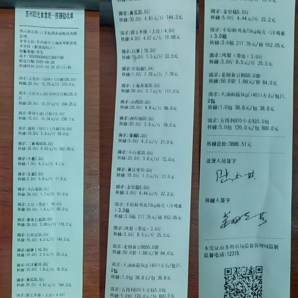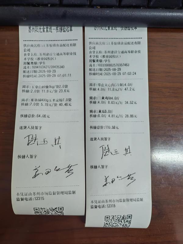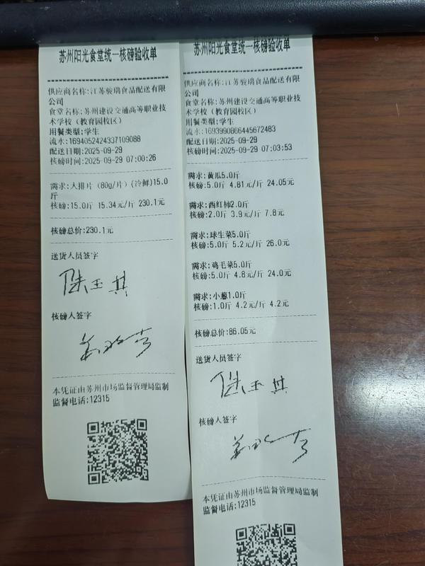苏州阳光食堂统一核磅验收单(20250929-食材)