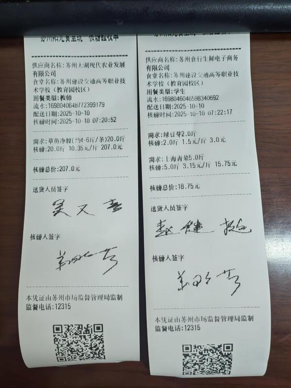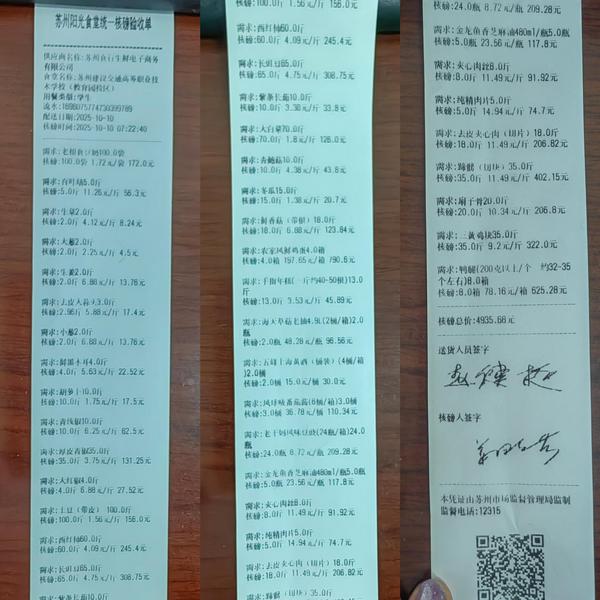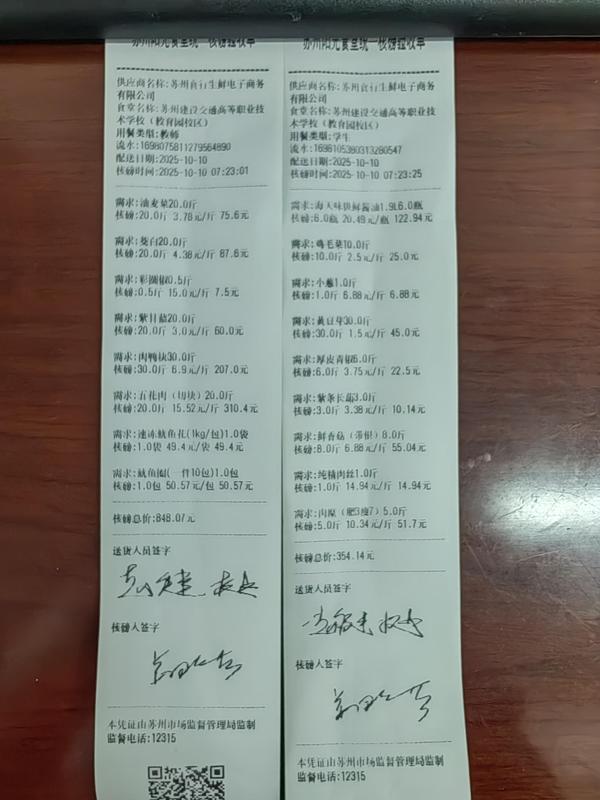 苏州阳光食堂统一核磅验收单(20251010-食材)