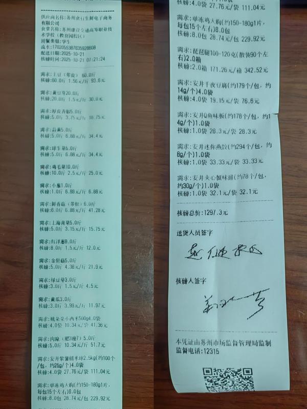 苏州阳光食堂统一核磅验收单(20251021-食材)