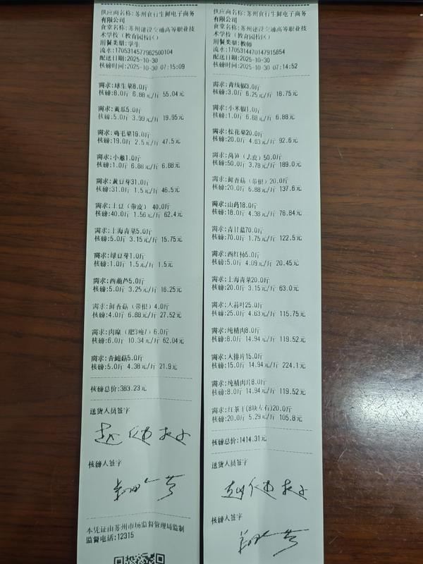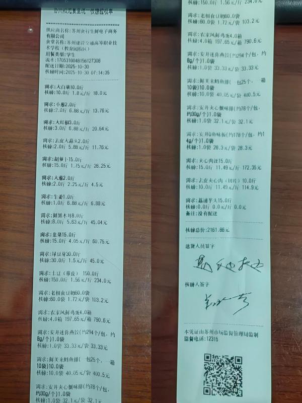 苏州阳光食堂统一核磅验收单(20251030-食材)